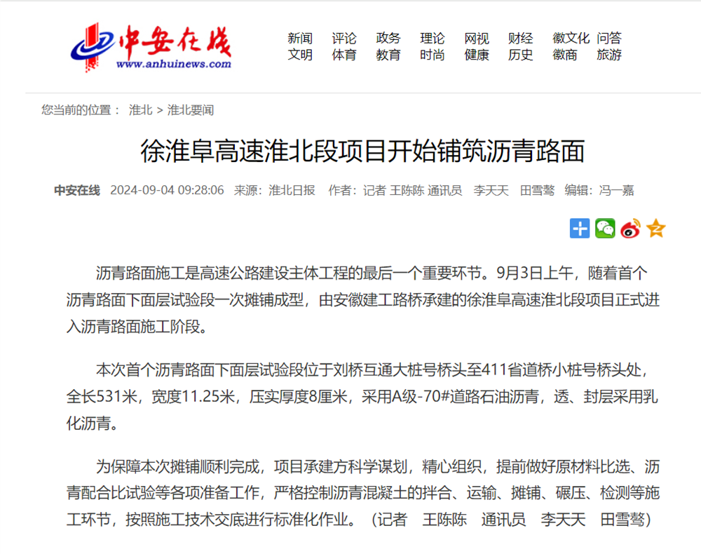 【名媒聚焦】央廣網(wǎng)、中安在線、淮北新聞聯(lián)播等主流媒體聚焦徐淮阜高速淮北段項目施工建設(shè)