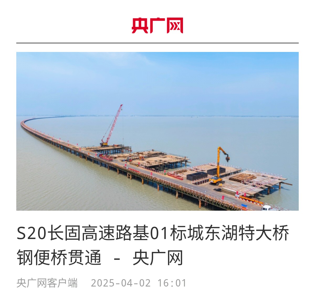 【央媒聚焦】央廣網(wǎng)等主流媒體關(guān)注報道S20長固高速路基01標(biāo)城東湖特大橋鋼便橋貫通