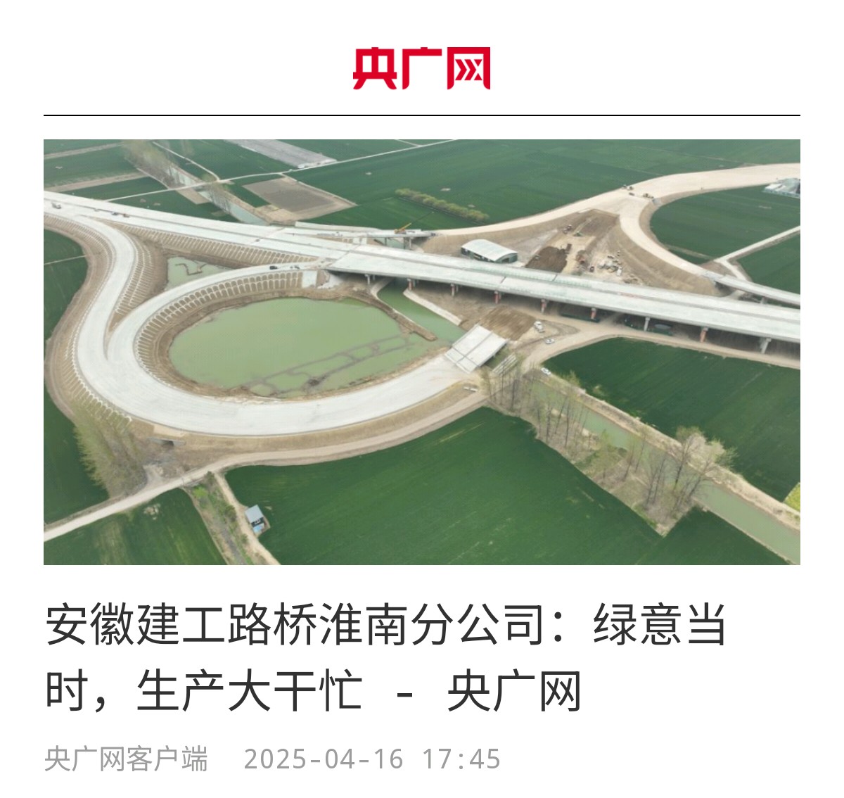 【名媒聚焦】央廣網(wǎng):安徽建工路橋淮南分公司——綠意當(dāng)時,生產(chǎn)大干忙