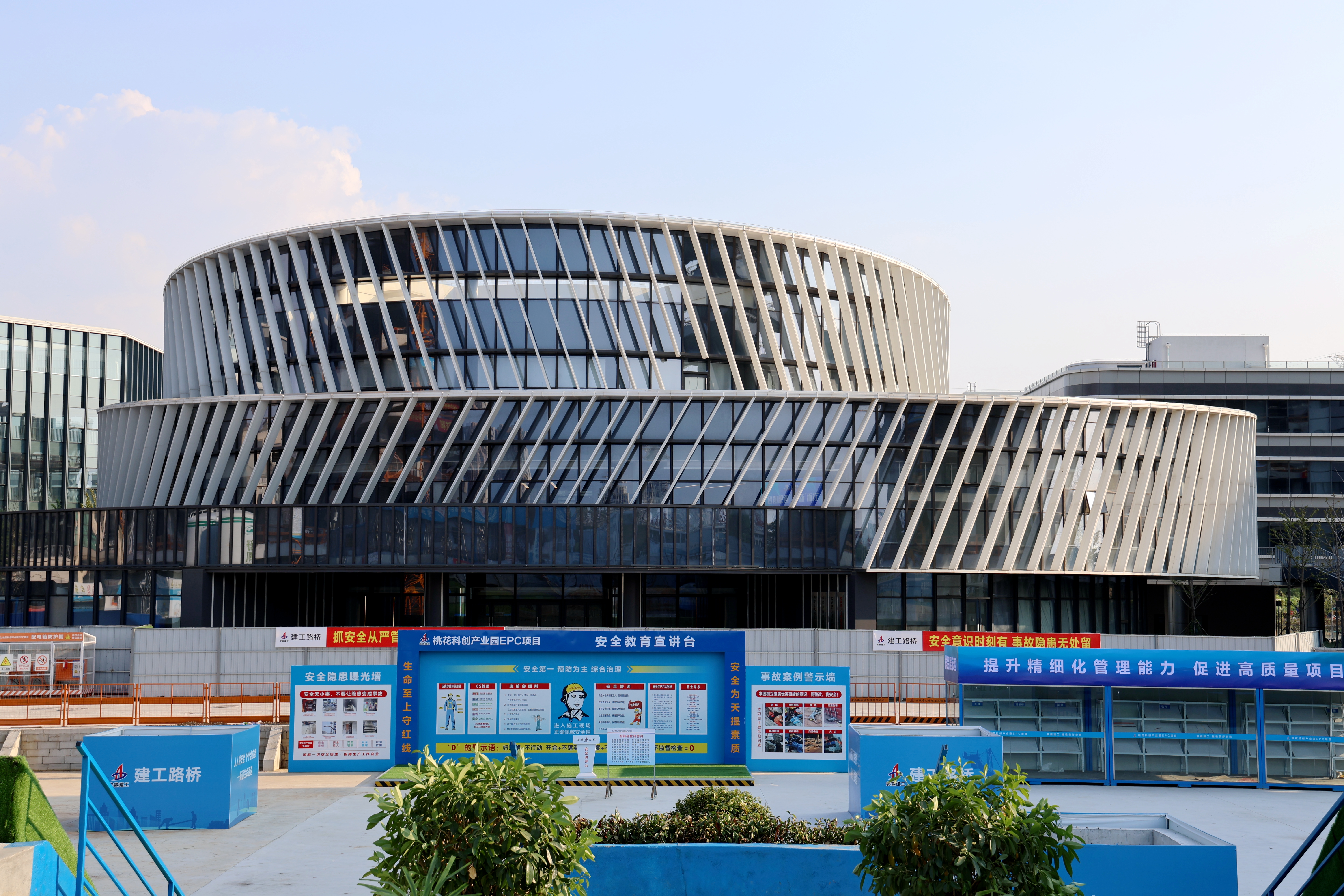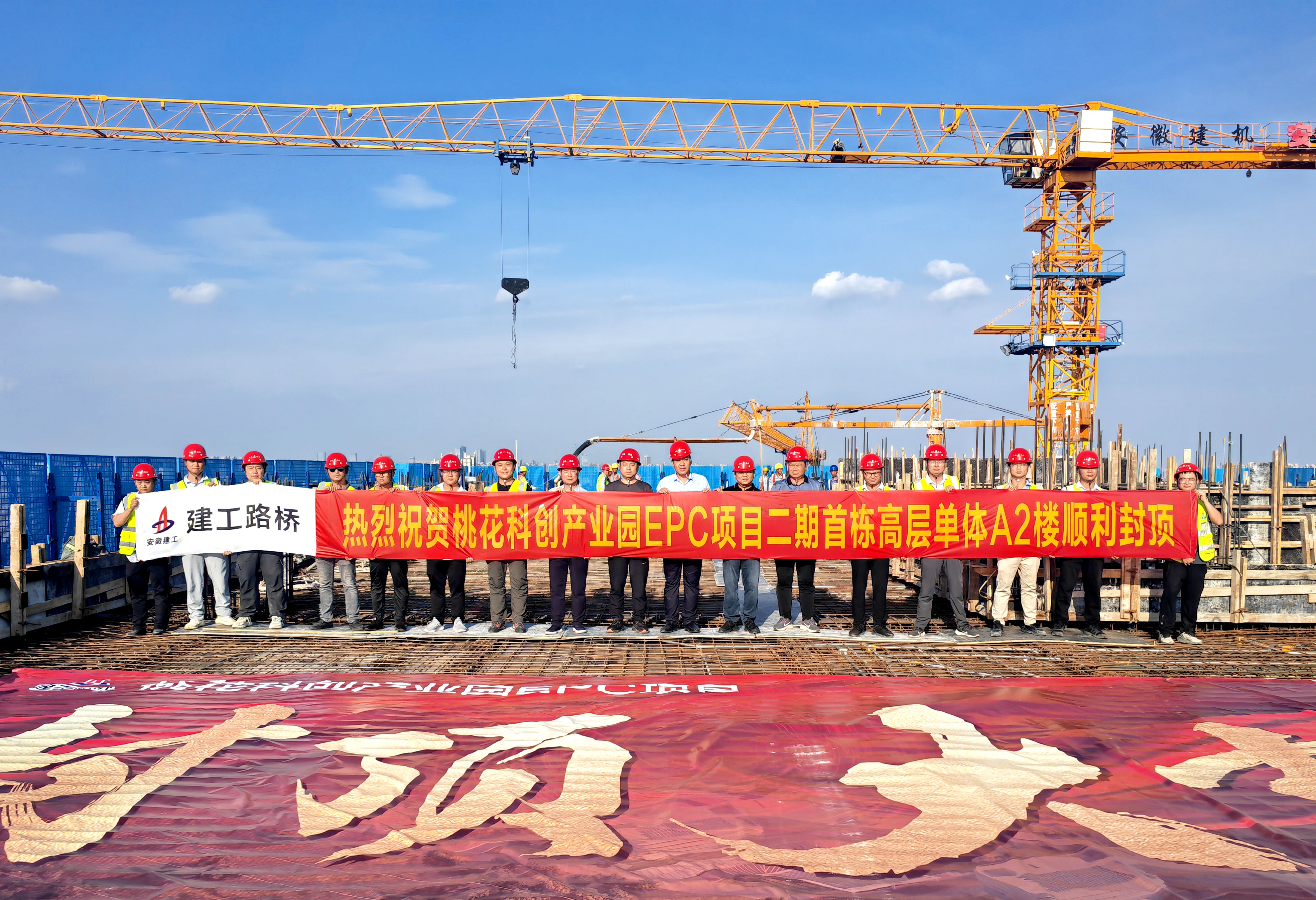 黨建與生產(chǎn)的同頻共振,不僅破解了建設(shè)難題,更催生了“1+1>2”的倍增效應(yīng)。項目黨支部緊扣項目不同建設(shè)周期的特點,精心組織開展黨員包保督導(dǎo)、任務(wù)攻關(guān)等特色活動十余次,為項目順利推進筑牢堅實保障。尤其在二期主體結(jié)構(gòu)攻堅階段,黨支部聚焦“急難險重”任務(wù),火速組建項目黨員突擊隊、設(shè)立7個黨員先鋒崗,以“越是艱險越向前”的擔(dān)當(dāng),成功攻克施工作業(yè)面廣、交叉作業(yè)密集、施工精度嚴(yán)苛等重大挑戰(zhàn),科學(xué)統(tǒng)籌工序銜接、優(yōu)化資源配置,最終創(chuàng)下地上結(jié)構(gòu)“6天/層”的施工佳績,僅用7個月實現(xiàn)主體結(jié)構(gòu)封頂,生動詮釋了黨建引領(lǐng)下的“路橋速度”與“紅色擔(dān)當(dāng)”。項目獲評2024年度安徽省重大項目建設(shè)勞動競賽二等獎等榮譽稱號。