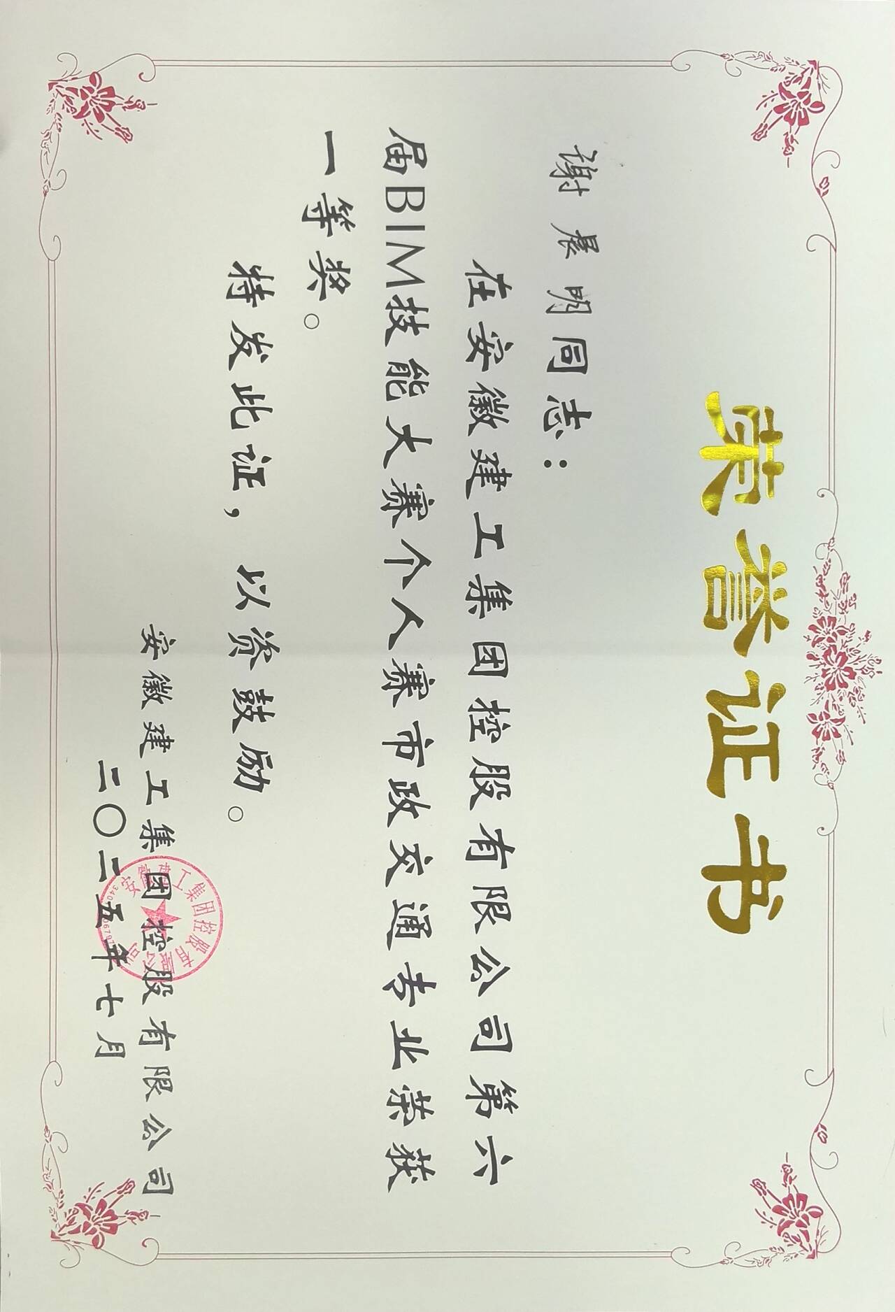 奮勇奪冠!公司榮獲集團第六屆BIM技能大賽團體獎第一名