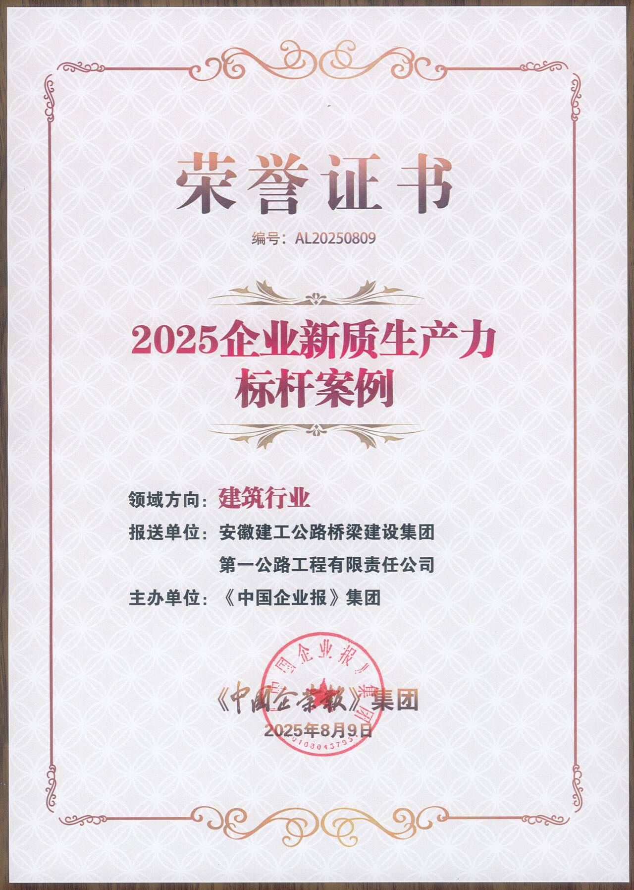 經(jīng)過(guò)為期數(shù)月的深入調(diào)研、案例征集和嚴(yán)格評(píng)審,近日,“2025企業(yè)新質(zhì)生產(chǎn)力標(biāo)桿案例”正式發(fā)布,全國(guó)共有50家優(yōu)秀企業(yè)案例入選,涵蓋人工智能、新能源、低空經(jīng)濟(jì)及傳統(tǒng)產(chǎn)業(yè)等領(lǐng)域。公司所屬公路一公司《以新質(zhì)生產(chǎn)力激活企業(yè)高質(zhì)量發(fā)展新動(dòng)能》案例,憑借在創(chuàng)新發(fā)展、綠色發(fā)展和可持續(xù)發(fā)展方面的突出成效成功入選。