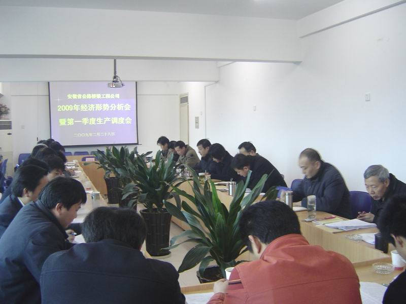 2月28日,公司在四樓會議室召開2009年經濟形勢分析會暨第一季度生產調度會。公司領導班子成員、直屬(生產)單位負責人、機關部門負責人、直屬項目部經理、總工和財務負責人共計50余人參加了會議。會議由副總經理盛明宏主持。