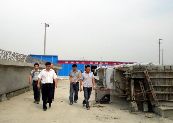 7月2日下午2點(diǎn)30分,汪總一行先來到馬鞍山東環(huán)改造項(xiàng)目指導(dǎo)工作,該項(xiàng)目經(jīng)理冷峰全程陪同。汪總一行首先頂著酷暑、披著煙塵,來到了該項(xiàng)目部的清淤現(xiàn)場、預(yù)制場和樁基現(xiàn)場,仔細(xì)耐心的查看了各項(xiàng)施工任務(wù)的進(jìn)展情況以及質(zhì)量情況。隨后,在項(xiàng)目部會議室,汪總一行又聽取了項(xiàng)目經(jīng)理冷峰關(guān)于近期該項(xiàng)目工程、試驗(yàn)、安全、財(cái)務(wù)等工作開展情況的匯報后,在肯定了該項(xiàng)目前期工作的同時,也針對其中的工程質(zhì)量、安全文明等存在的問題,提出了寶貴意見。希望該項(xiàng)目能抓緊落實(shí),及時把問題解決。該項(xiàng)目經(jīng)理冷峰表示一定會按照公司的意見與要求,解決問題,提高工作水平。