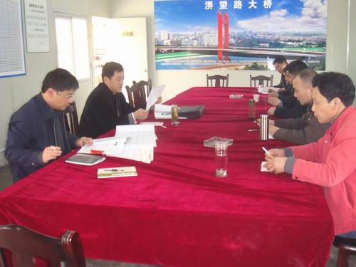 戴總一行深入施工一線,實地察看了大橋的建設情況,與現場技術人員和施工人員進行了親切的溝通交流。隨后,戴總一行在項目部會議室召開了座談會,就淠望路大橋施工方案、施工工序進行了詳細的剖析,并提出了具有建設性的指導意見。