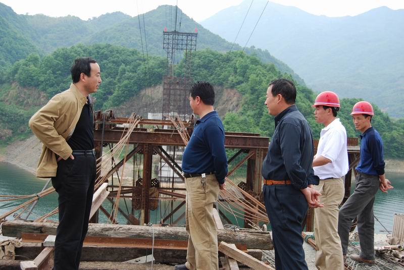 2009年4月30日上午10:30,寧靜的大別山革命老區金寨縣梅山水庫上空傳來了清脆的鞭炮聲,絢爛的禮花把青山綠水映襯得更加多姿。備受社會關注的金寨縣金桃大橋主橋第二孔,即桃嶺跨第一片重達75T的箱拱梁被緩緩吊起,在眾目凝視下穩穩就位,為“五.一”國際勞動節獻上了一份厚禮。這預示著金桃大橋又取得了一個實質性的進展和階段性的勝利。金寨縣交通局張傳旭局長、王學軍副局長、總監賈淳忠等在公司總經濟師楊文柱的陪同下,現場觀看了整個吊裝過程。下午,金寨縣人大副主任石本德、縣委常委、常務副縣長趙權分別到場表示祝賀和慰問。